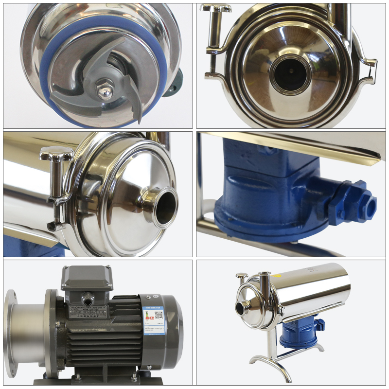 不锈钢卫生泵(又名奶泵、饮料泵)属单级、单吸式卫生泵,适合输送牛奶、饮料、酒等各种液体。它是食品、化工、医药等行业不可缺少的输送设备,特别适合于应用在管式杀菌、酸奶持温设备、CIP清洗等阻力较大的系统中。叶轮安置在泵壳里面,它和泵轴一起旋转,叶轮刀片以动能和压能的形式将能量传达给流体。该泵不可反向旋转,正确的旋转方向是顺时针,从电机后面可看出泵的旋转方向。